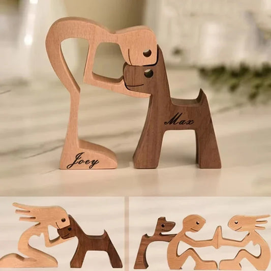 Ornements en bois humains avec chien, décoration de Noël en famille, artisanat d'art, jouets en bois, cadeaux de décoration pour fille et animal de compagnie